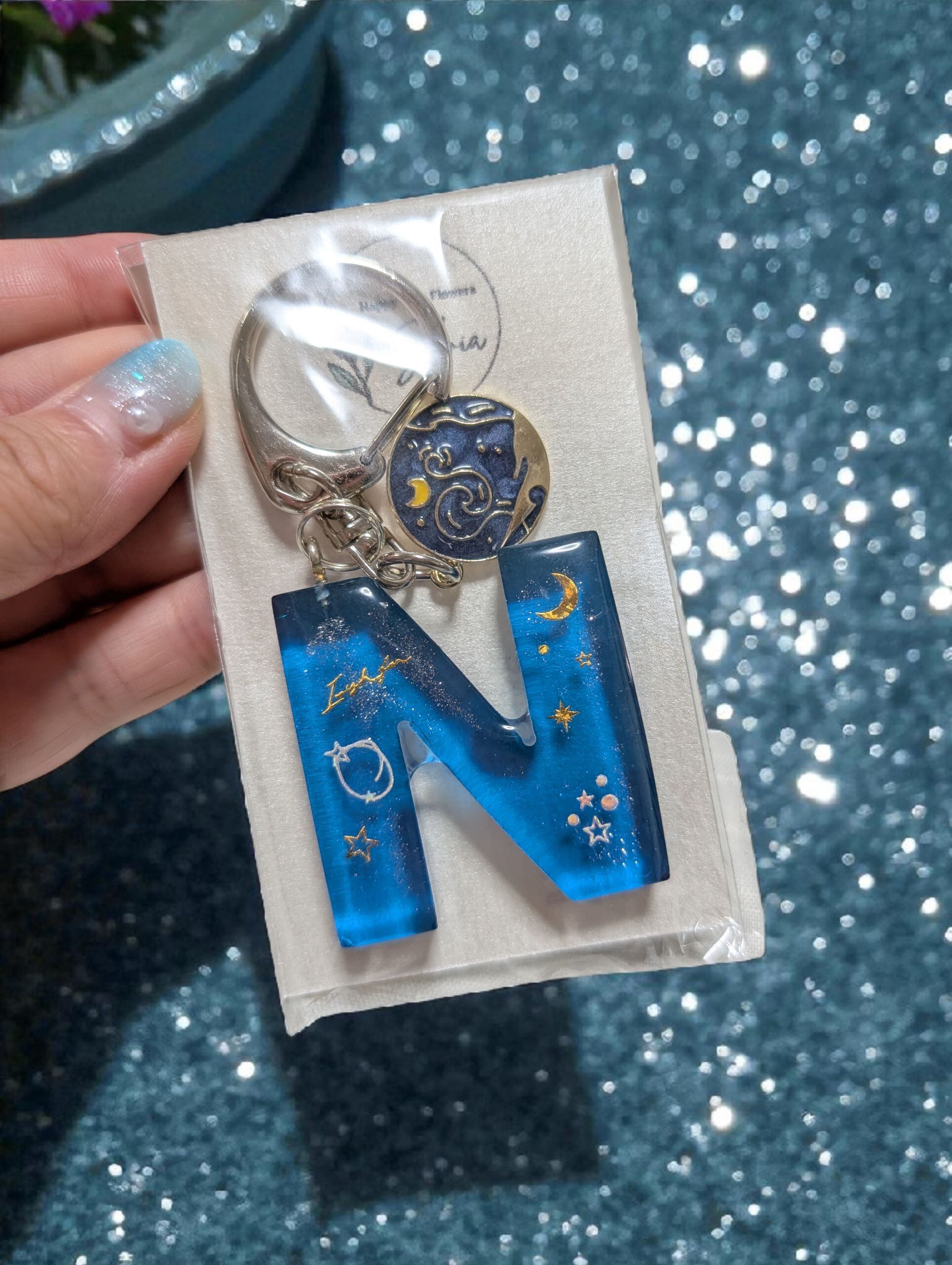 2液性のエポキシレジン液で製作したハーバリウムイニシャルキーホルダーです。