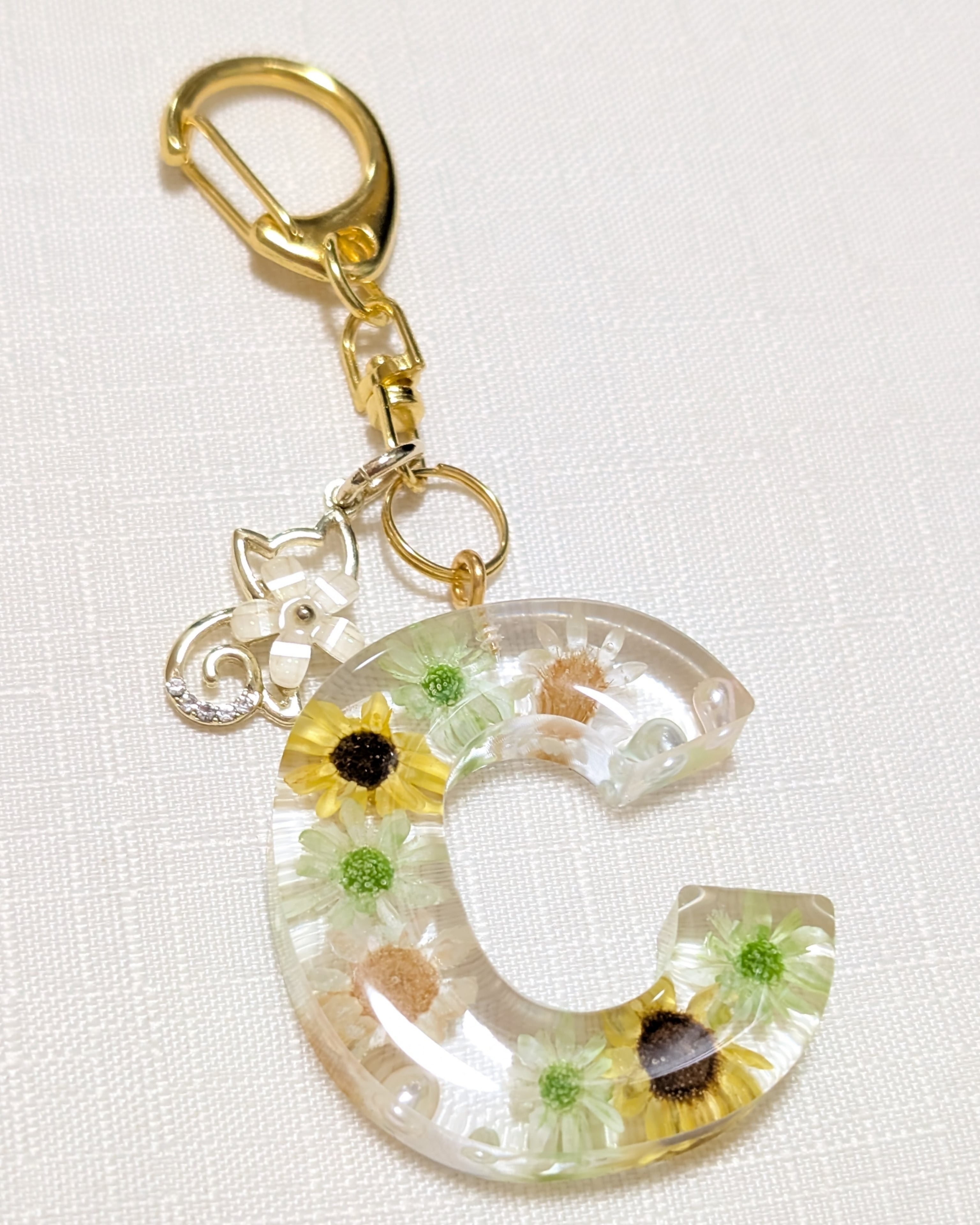 C(ひまわりモチーフ)イニシャルキーホルダー