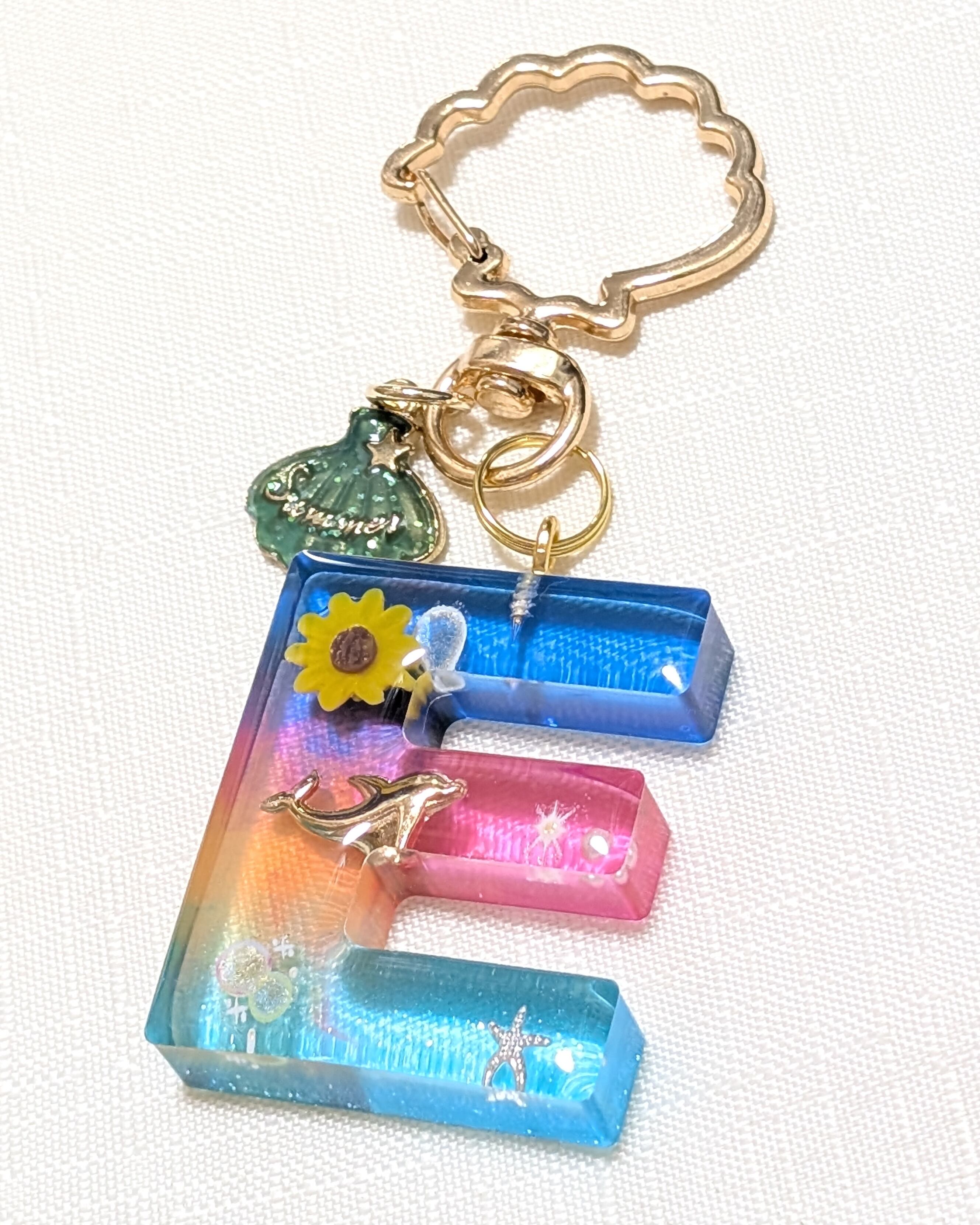 E(ひまわり×海モチーフ)イニシャルキーホルダー