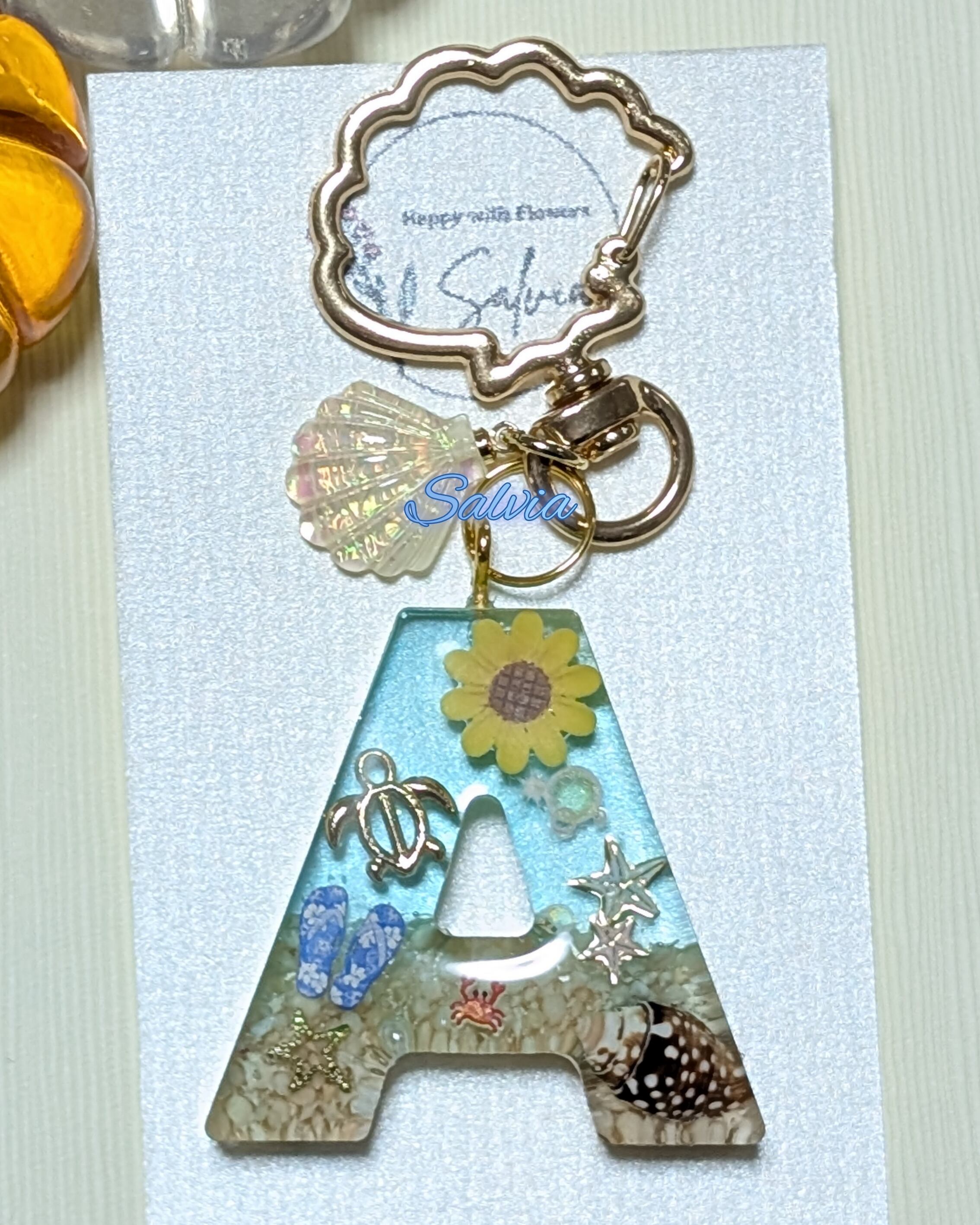 A(海×ひまわりモチーフ)イニシャルキーホルダー