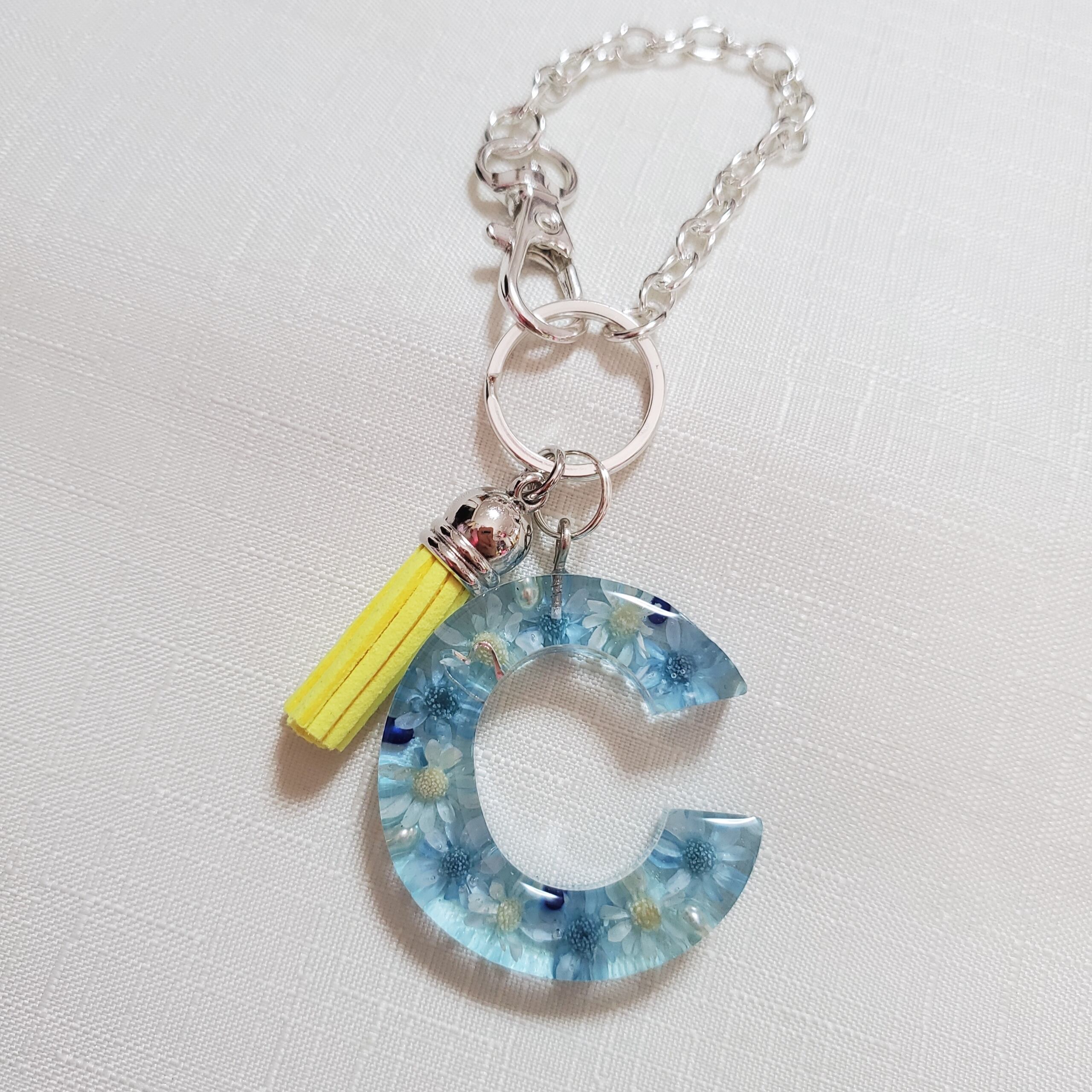 2液性のエポキシレジン液インアリウムで製作したハーバリウムイニシャルキーホルダーです。