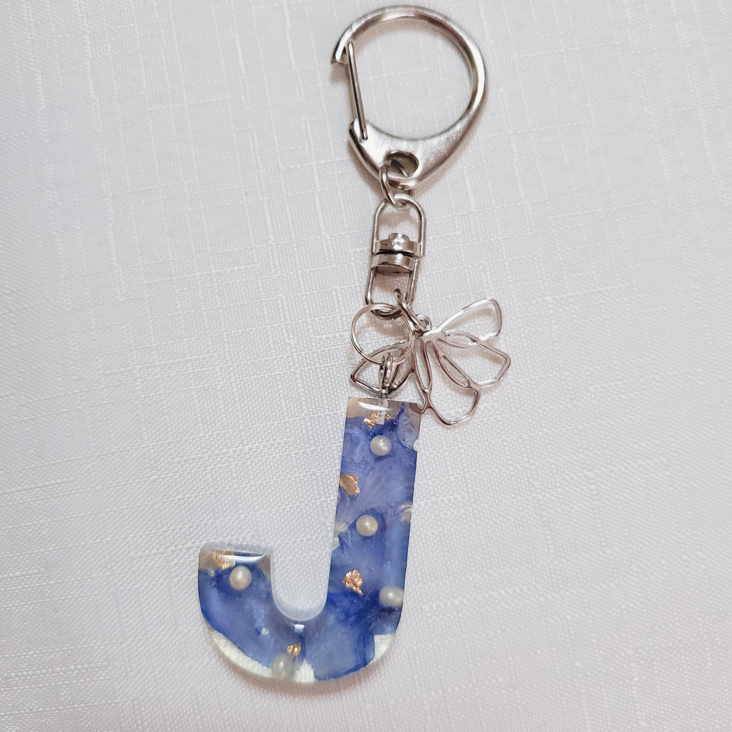 2液性のエポキシレジン液インアリウムで製作したハーバリウムイニシャルキーホルダーです。