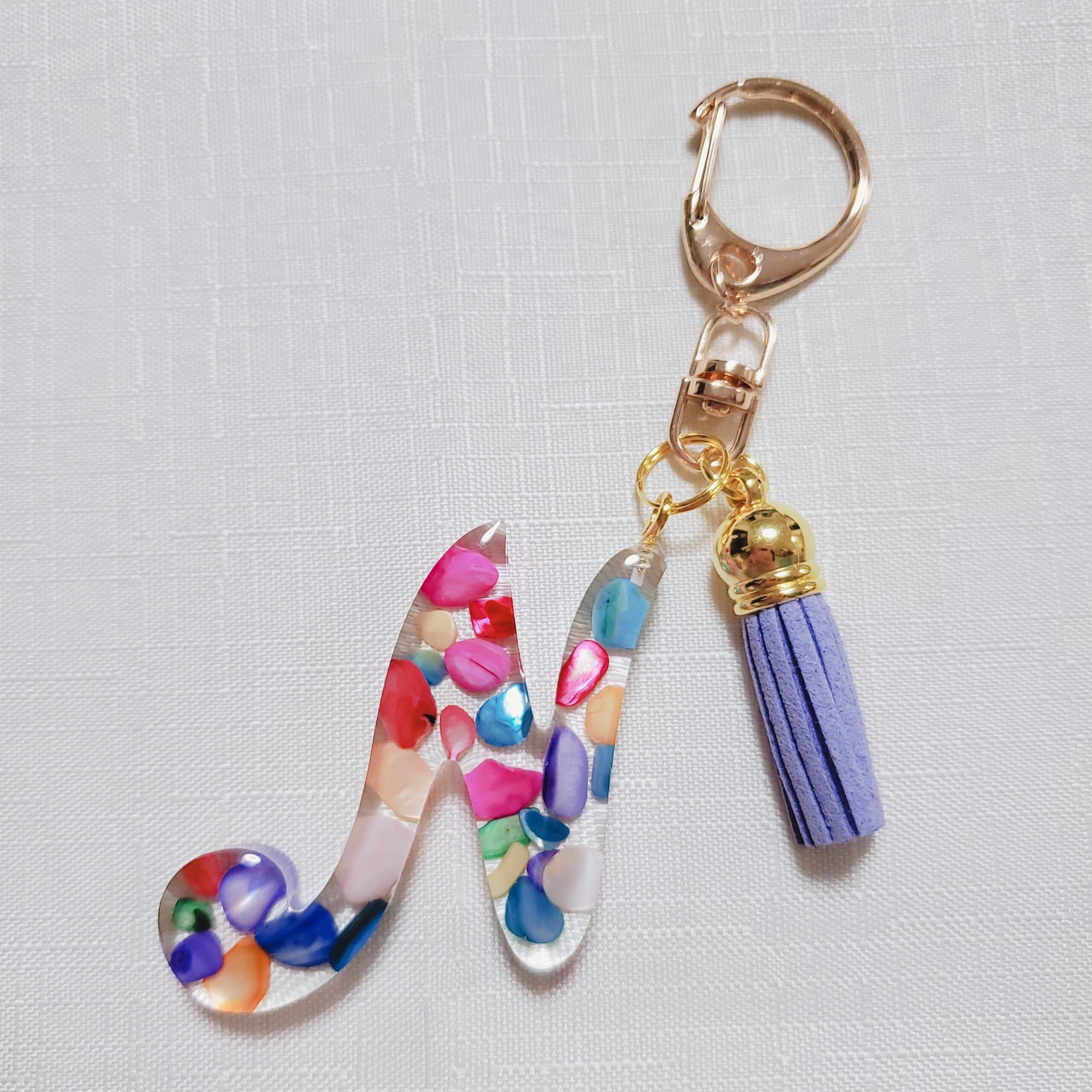 N(筆記体さざれ石)イニシャルキーホルダー