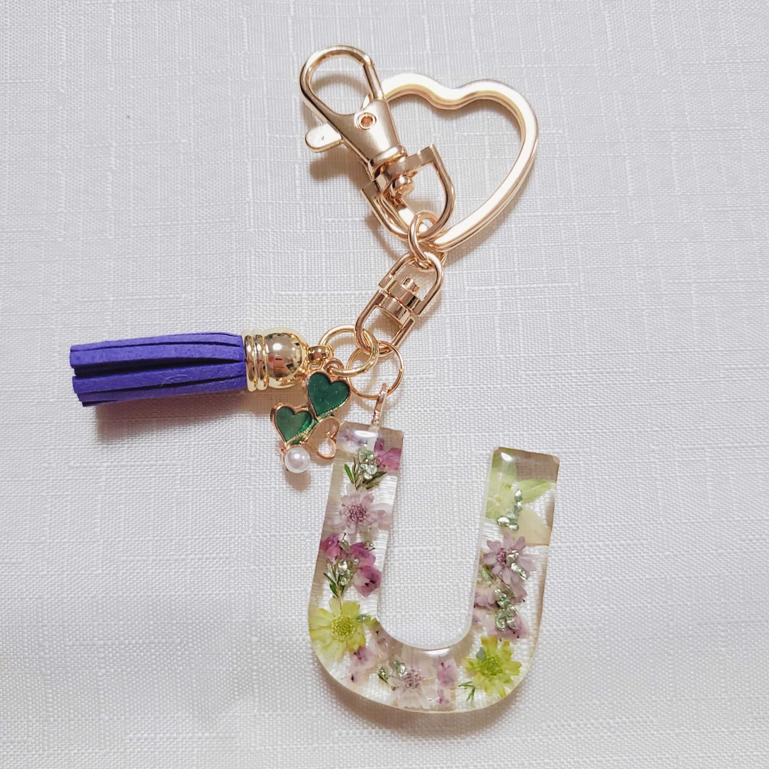 2液性のエポキシレジン液インアリウムで製作したハーバリウムイニシャルキーホルダーです。