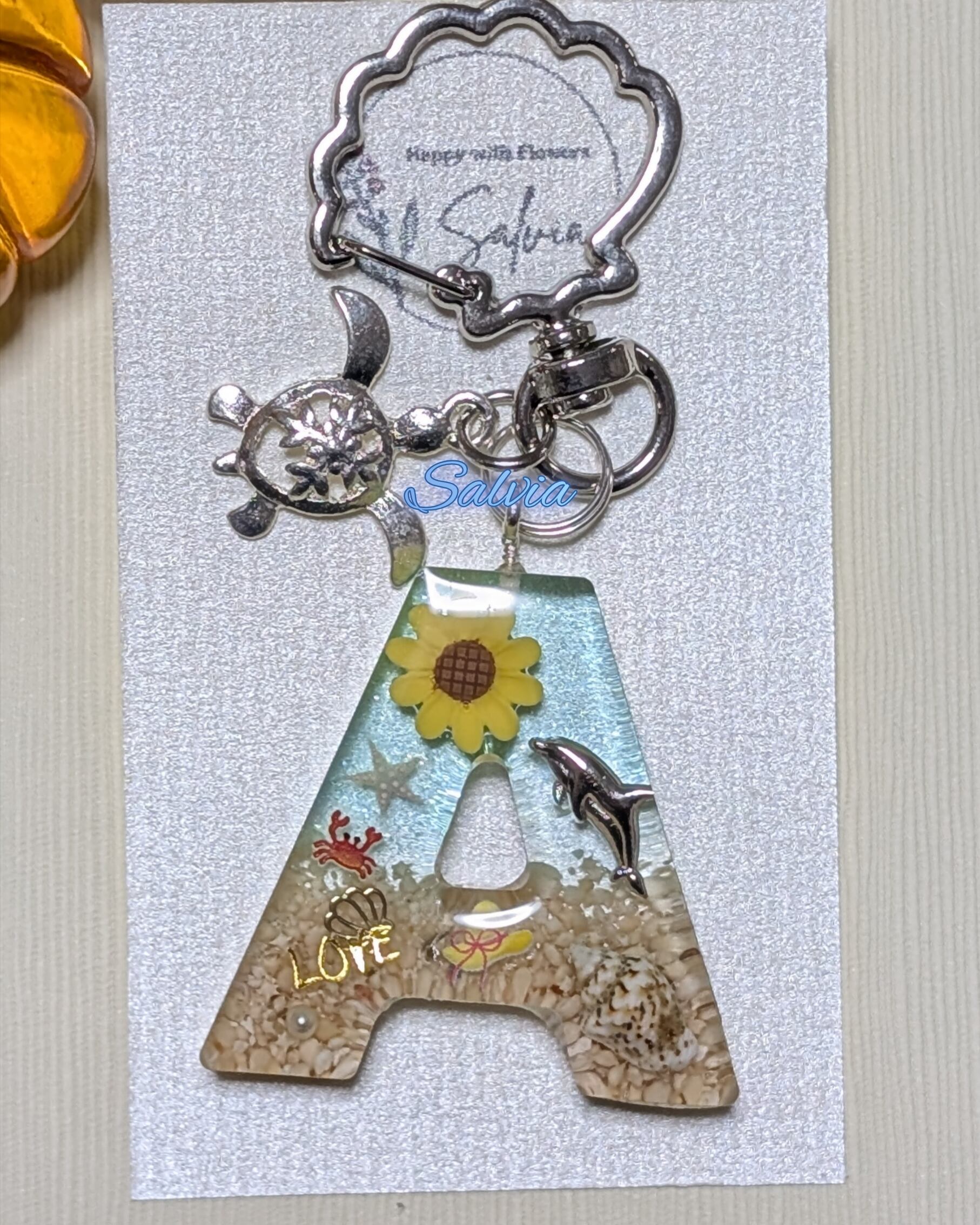 A(海×ひまわりモチーフ)イニシャルキーホルダー